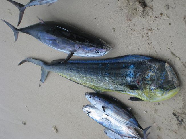 Lors d’une autre sortie à bord d’un autre bateau, nous avons sortis 5 thons bonite et 1 dorade coryphène. Malheureusement, je n’avais pas prévu l’appareil photo…Dommage, je vais devoir y retourner !